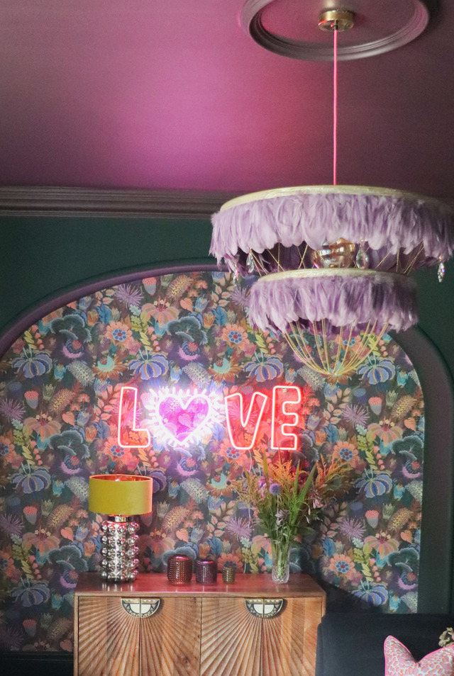 A feature wall, especially one with bright colours is a great way to bring disco interiors into your home.