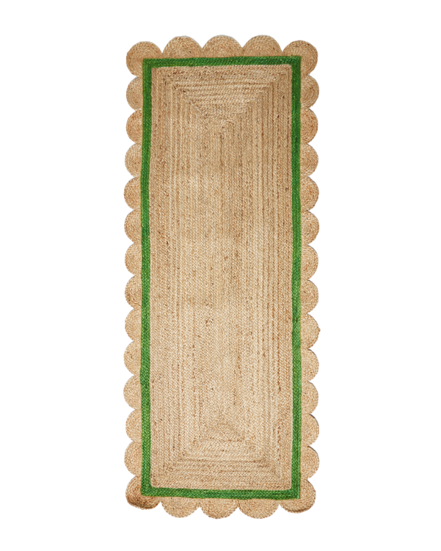 - Scalloped jute green border runner rug, £65 from Oliver Bonas – buy here
