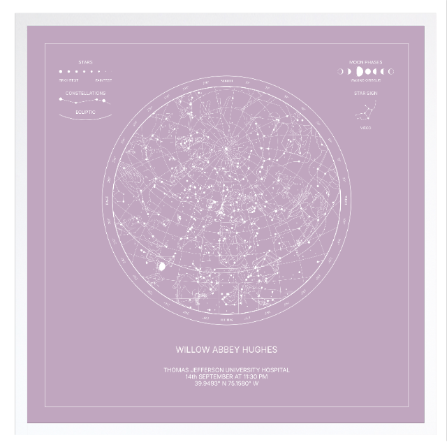 Choose from a range of colours and designs and choose an important date to you to forever have that night sky on your wall.