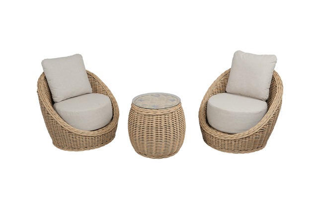 The matching round table with sleek glass top is the perfect companion to match, and the compact size means it can fit into most garden spaces.