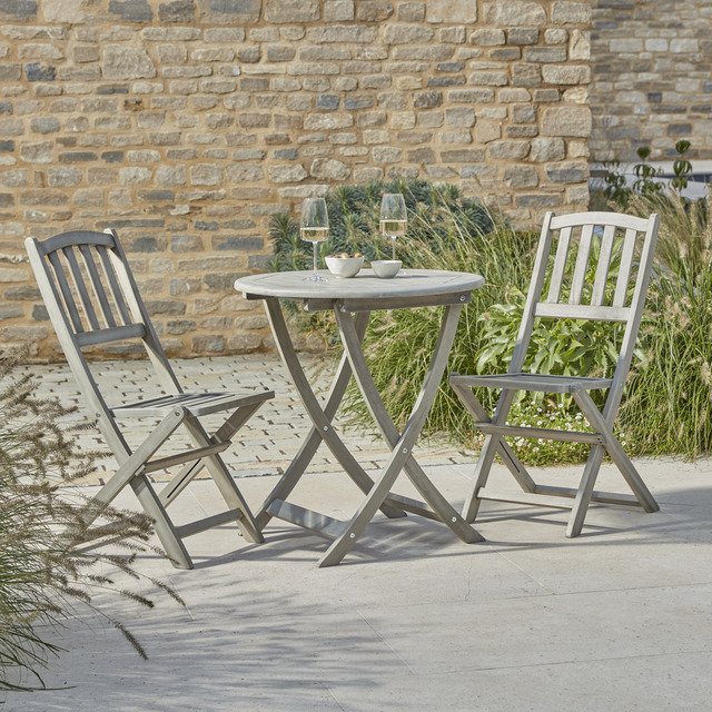 The chic blue works with pretty much every colour scheme and the bistro set offers a great spot for your morning coffee or evening glass of wine.